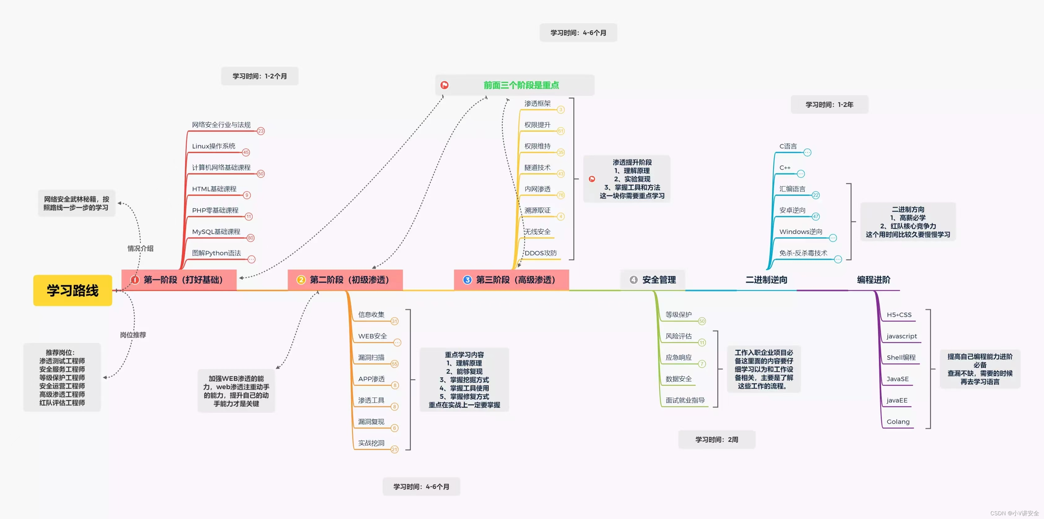 owasp top10,就是我们常说的10项最严重的Web 应用程序安全风险列表。每一项的成因,原理,攻击方法,防御方法。都需要学习。同时,多看看大佬的挖洞过程,尝试复现。sql注入、文件上传、xss、csrf、rce、文件包含、文件下载、反序列化等,算是必知必会。可以自己搭建靶场,尝试进攻。