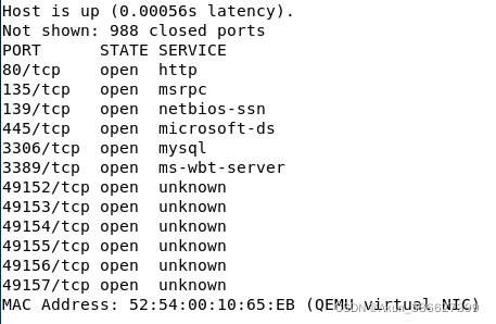 可以看到靶机开启了很多端口我们先从最简单的端口先尝试一下3389的弱密码: