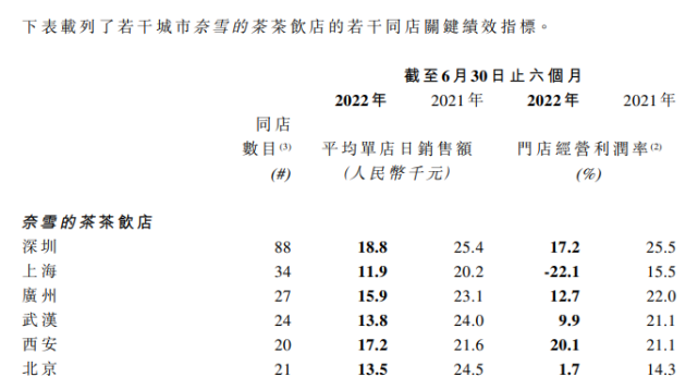 与此同时,上半年奈雪的茶位于深圳、上海、广州、武汉、西安、北京等多个主要城市的若干同店,平均单店日销售额和门店的经营利润率均出现不同程度的下降。