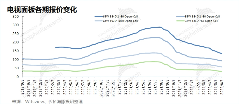 海豚君对面板价格的看法:****因为面板价格现在已经跌破成本价,那么继续下跌的空间并不大。但是现在也还没到价格反弹的时间,价格真正的反弹需要等到电视需求回暖或者电视厂的库存消化一段时间后。