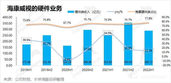 海康威视依托摄像头等硬件载体出货,并对客户进行后续软件服务的跟进,从而实现公司 “软硬一体化” 的业务框架。从本次公布的年中财报来看,海康威视的软硬两方面分别表现如何?