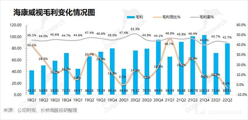 海康的毛利率继续低迷,本季度仅有 42.7%,同比下滑 3.2pct,低于市场预期(44.83%)。这主要是因为①毛利率较高的软件业务本季度占比下滑,对毛利率有结构性影响;②海康威视在整体业绩上仍以硬件产品为主,在疫情、原材料涨价等因素下,成本端的上升拉低了公司的毛利率水平。