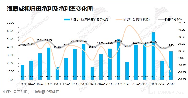 **海康威视在 2022 年第二季度实现归母净利 34.75 亿元,同比下降 19.4%**,低于市场预期(42.32 亿元),盈利能力下滑是本季业绩差的主要原因。