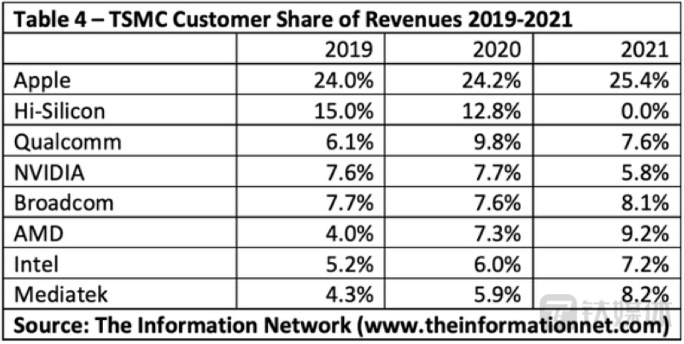 目前,台积电最大客户是苹果公司,从12nm制程开始,苹果的 iPhone 手机每年都会是第一个采用台积电最先进的制程工艺。2022年第三季度,5nm制程是台积电最大的营收贡献板块,占该公司总收入的28%,高于去年同期的18%。而其他客户包括AMD、英伟达、高通、联发科、Arm,甚至是英特尔的GPU系列,也都开始与台积电合作。