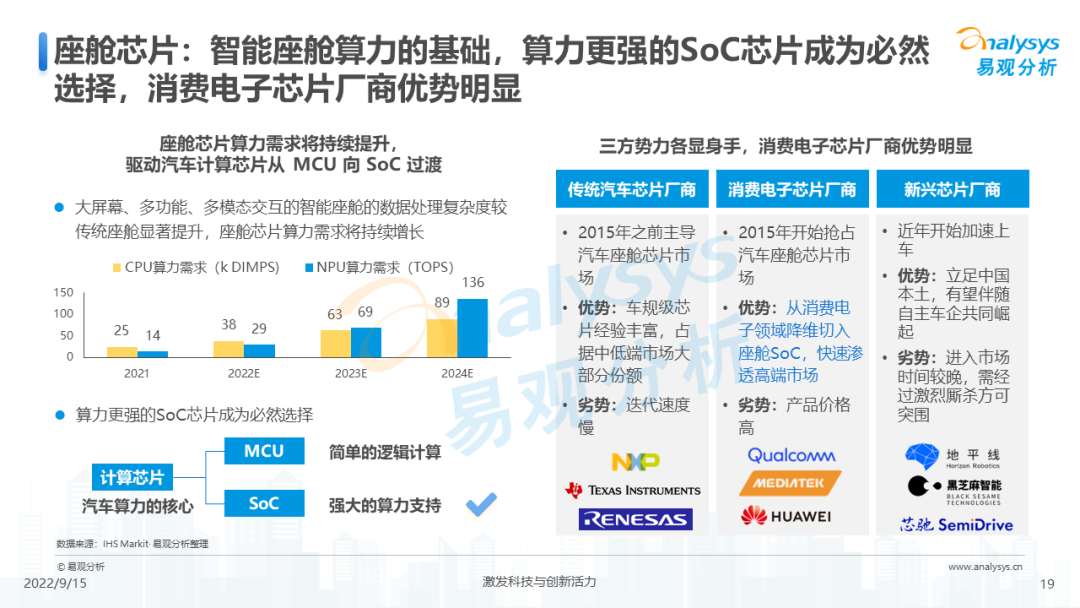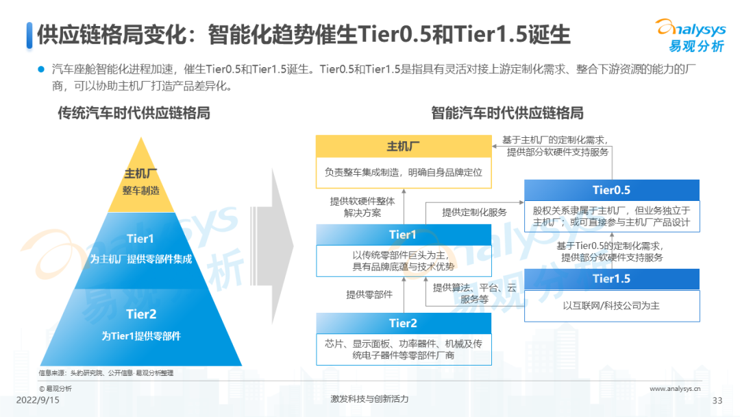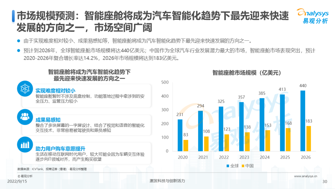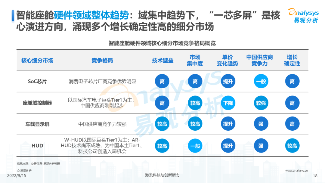 本分析内容将从发展背景、产业格局及未来趋势方面分析智能座舱市场的机遇与挑战,以及座舱智能化对供应链格局的影响。