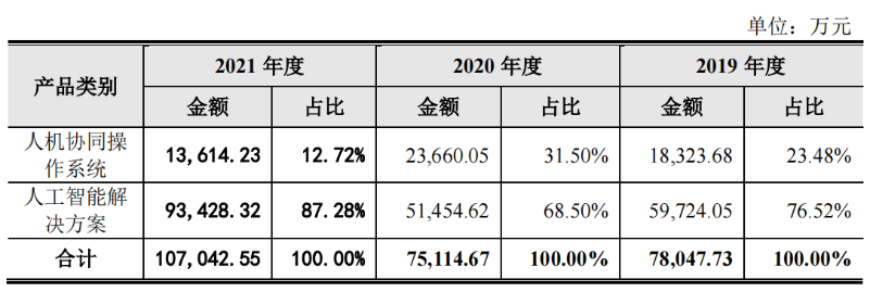 “人工智能解决方案产品”属于单一化产品,需安装调试或定制开发,而定制化程度越高,外包服务成本和人工成本也就越高,因此导致产品毛利率相对较低。