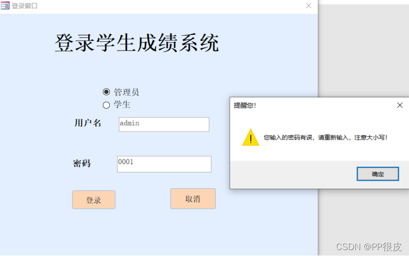 DoCmd.OpenForm ("管理员系统") '登陆成功,打开管理员系统界面