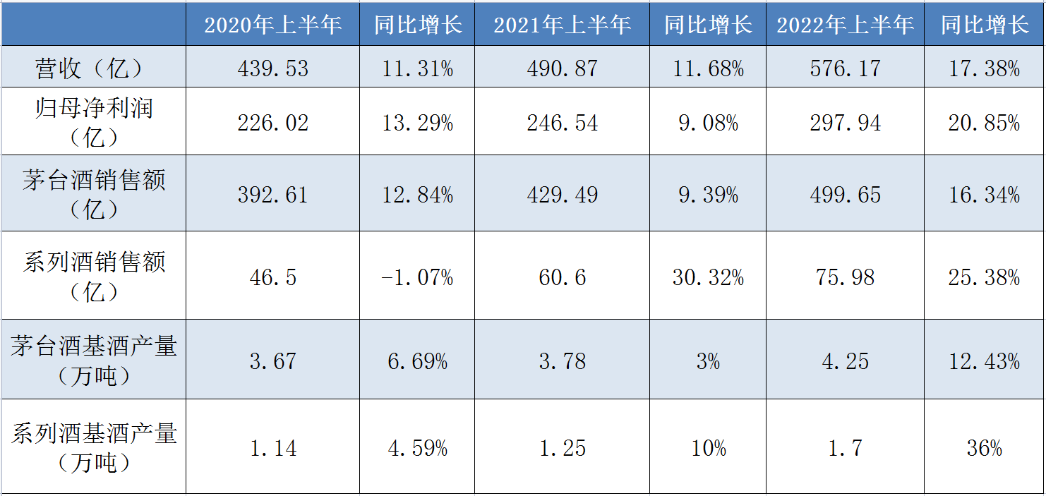 日前,贵州茅台(600519.SH)发布2022年半年度报告,报告期内,公司营收576.17亿,同比增长17.38%;归母净利润297.94亿,同比增长20.85%,对比2022年要实现营收同比增长15%的业绩目标,公司上半年的增速已经超过目标值。