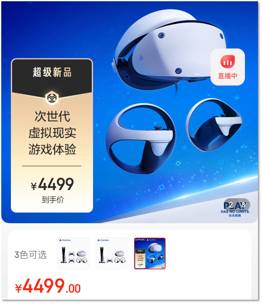 2月22日首发当日,索尼PS VR2的国行售价为4499元,这一价格远高于同类型产品。2020年Meta Quest 2初次售价为229美元,折合人民币1500元左右。而国内品牌PICO4的官网售价最高为3000元。4499元的价格直接让PS VR2成了消费者眼中的“高端机”。