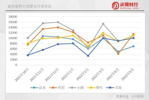 而随着疫情影响慢慢消散,蔚小理在5月均实现了显著的反弹。理想汽车交付量达到11496辆,同比增长165.9%,环比增长175.9%;小鹏汽车交付量达到10125辆,同比增长78.0%,环比增长12.5%;蔚来的交付量为7024辆,同比增长4.7%,环比增长38.4%。