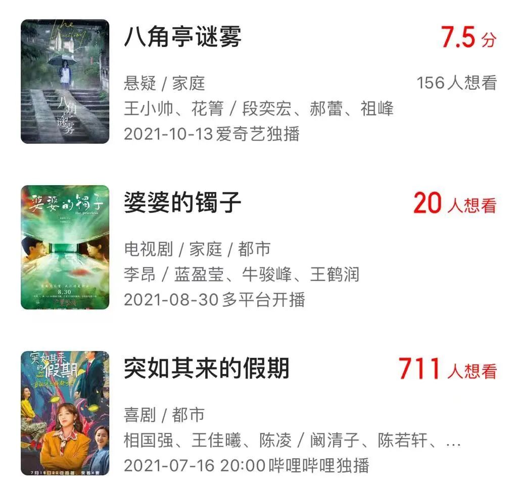 而且,三部短剧都是合作不同平台,也就不能怪单一平台的用户基数问题。这其中,B站播出的《突如其来的假期》属于有口碑无热度,芒果季风剧场播出的《婆婆的镯子》口碑热度都不及预期。