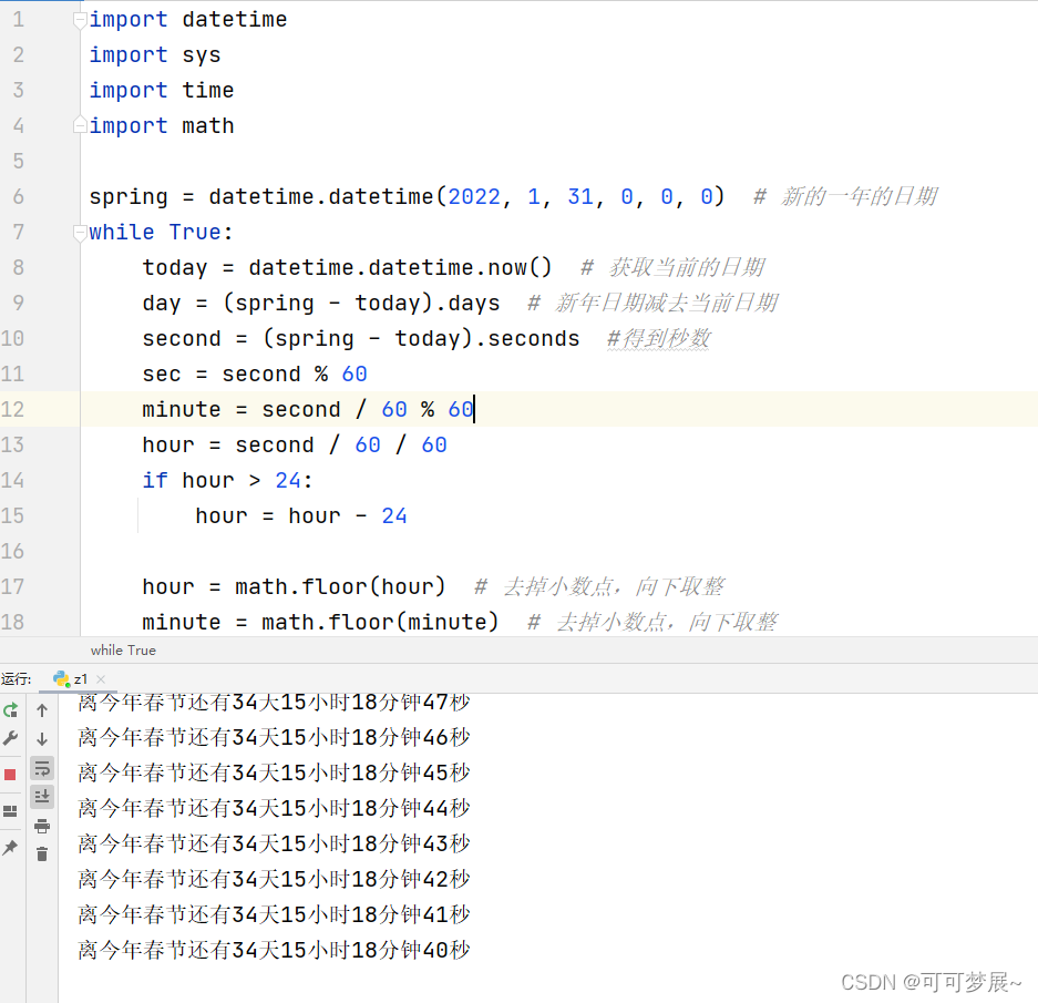 sys.stdout.write("离今年春节还有" + str(day) + "天" + str(hour) + "小时" + str(minute) + "分钟" + str(sec) + "秒" + '\r')