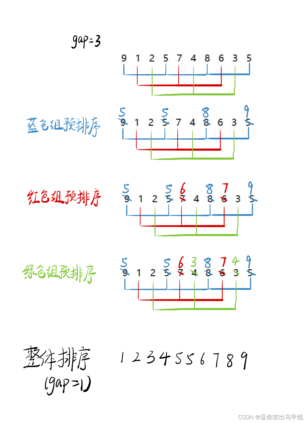 gap = gap / 3 + 1;//逐步减小gap,最后gap会为1