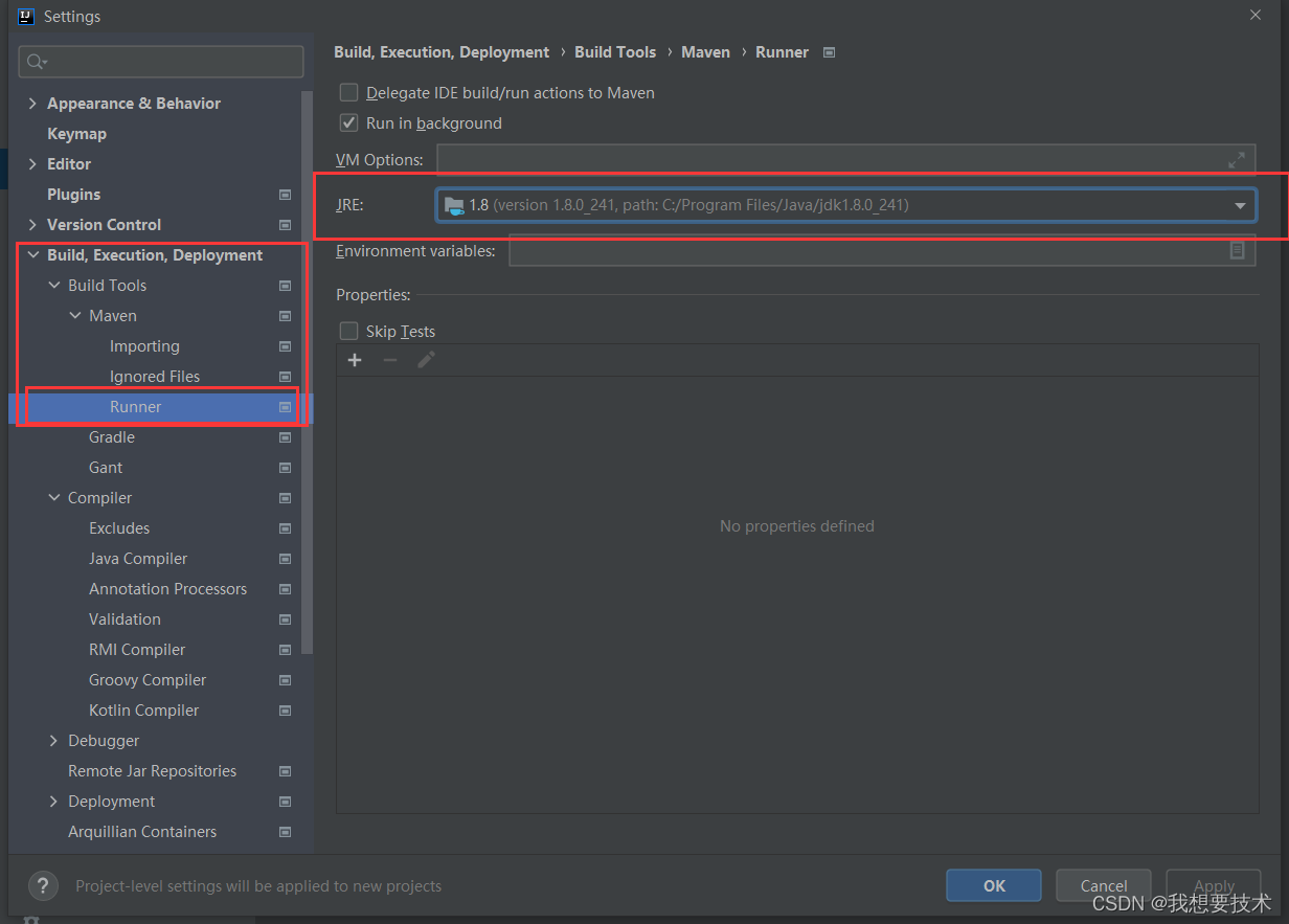 3)找到Maven下的Runner, 配置JRE的版本,选择自己下载使用的jdk的版本即可
