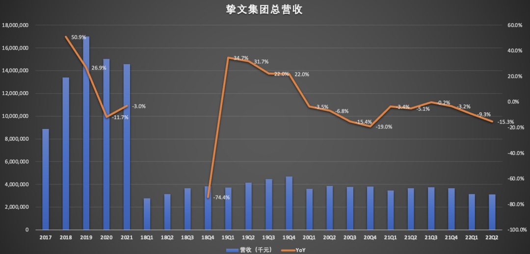 数据显示,2022年第二季度,挚文集团实现了31.104亿元的净营收,略超预期,同比减少15.3%,连续十个季度同比下滑。而根据该公司的预测,三季度收入将继续下滑至少14.9%,与截至6月份三个月15.3%的降幅基本持平。