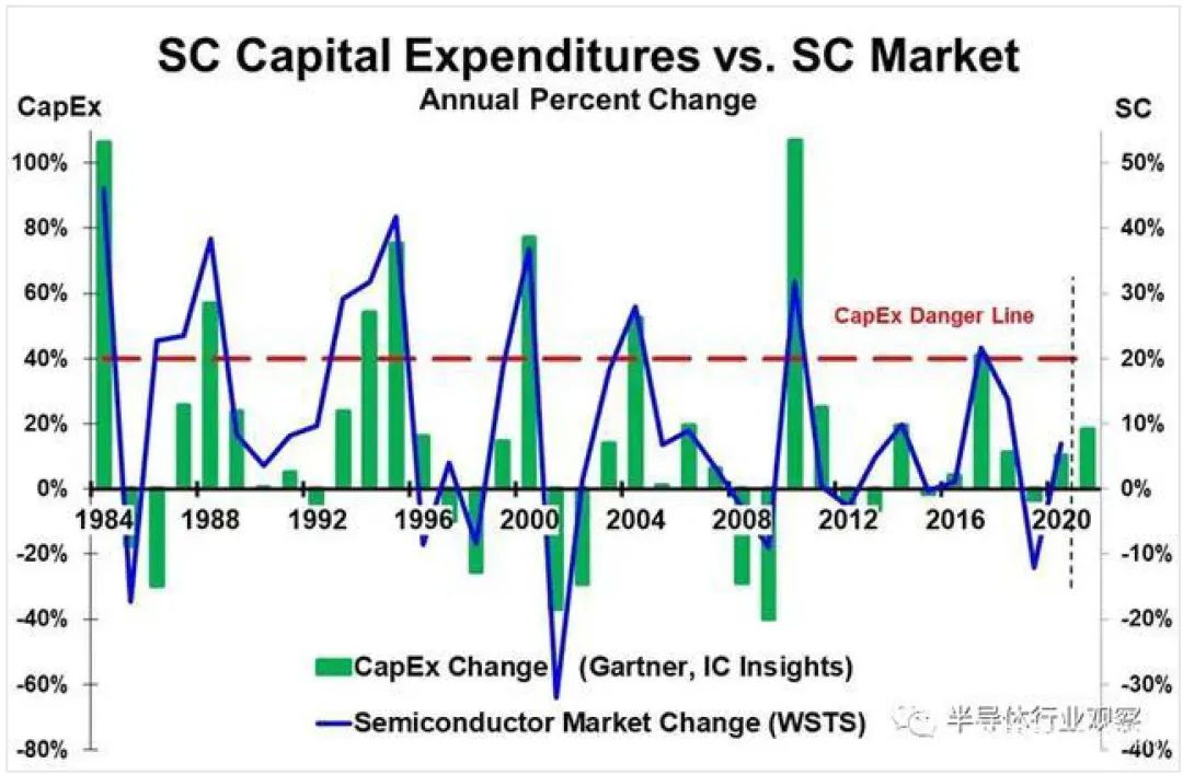要知道,半导体行业有着明显周期性的特征——高需求时期,会大量投资以扩大产能,承接需求;需求增长放缓或下降,步入产能过剩,供过于求。