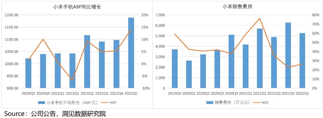 可以看到,种种动作下确有成效,2022Q1小米手机的ASP同比增长14%。
