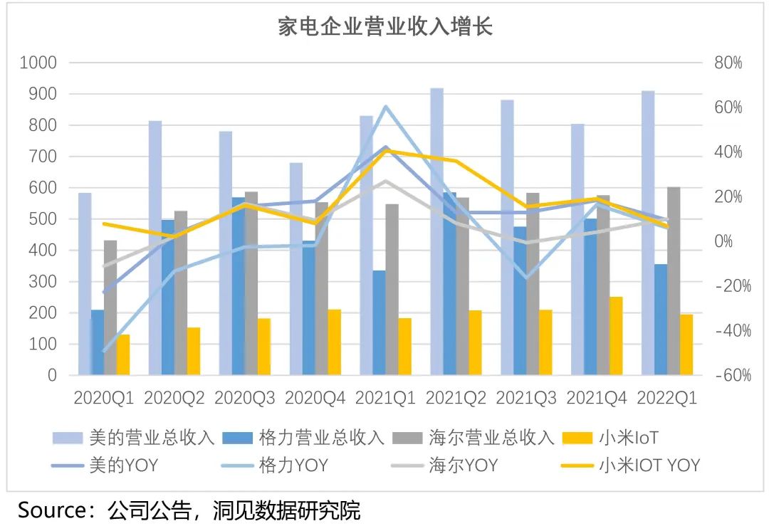 比如,在家电行业整体景气度下滑背景下——《2022年中国家电行业一季度报告》显示, Q1家电行业国内累计销售额,同比下降12.3%。其中,彩电、空调、冰箱(含冷柜)、洗衣机(含干衣机)等传统大家电零售额,同比下降14%。