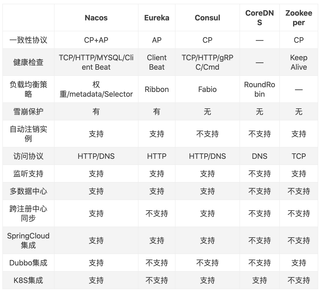 - 注册中心ZooKeeper、Eureka、Consul 、Nacos对比