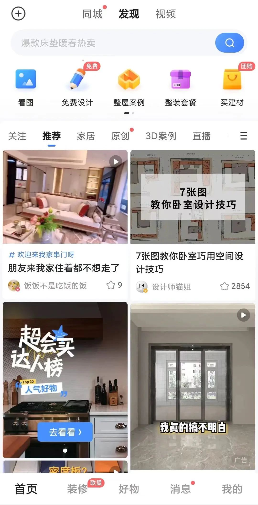 其装修平台住小帮又和齐家网、土巴兔相似,主要满足做攻略、看案例、联系装修公司的需求,走的都是其擅长的流量分发模式,仍在字节的舒适区中。
