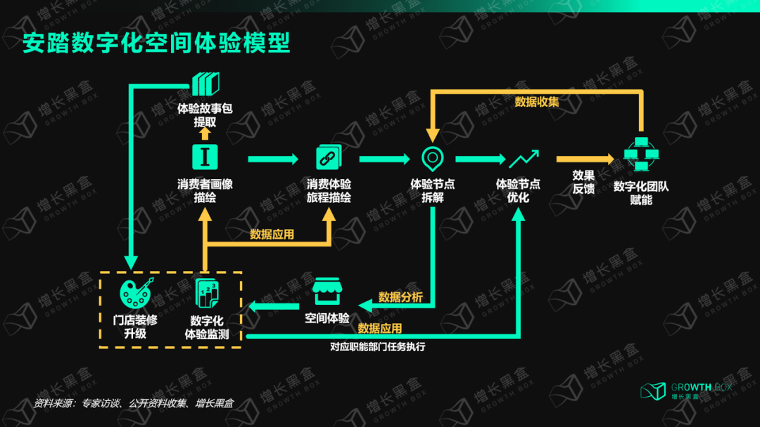 在空间管理体验环节,安踏按照上述四大流程模块,即体验节点拆解→数字化团队赋能→职能部门任务分配与优化执行→优化效果反馈与二次迭代四个环节来提升空间体验。