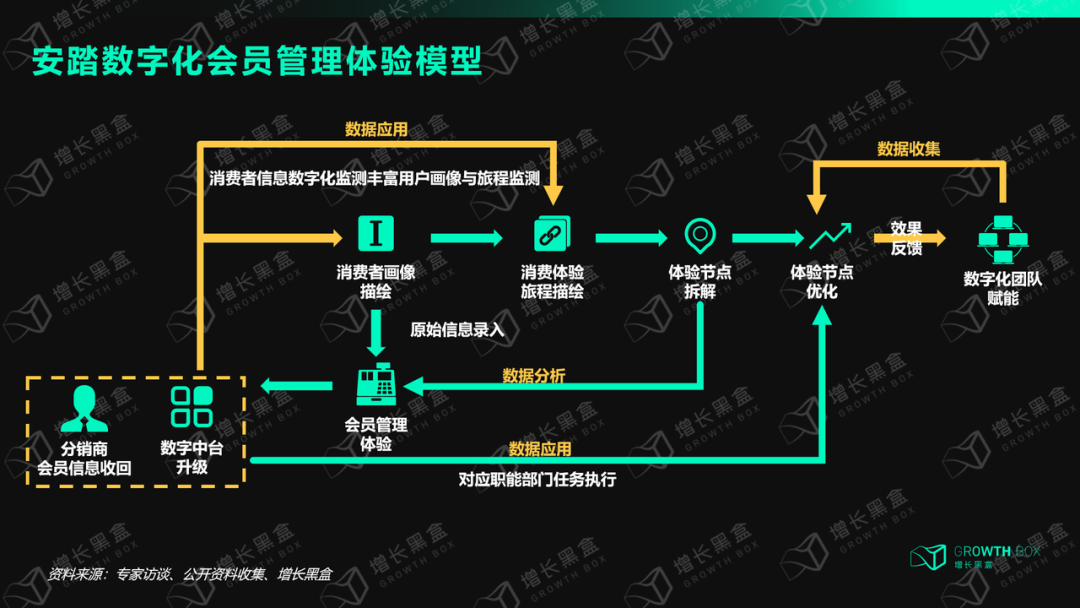 从安踏消费体验数字化管理模型来看,其消费体验的升级主要以下四大流程模块进行: