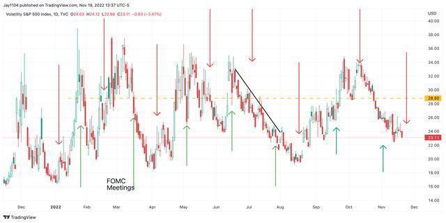 事实上,在整个2022年,随着市场对美联储会议纪要的看法,VIX在FOMC会议中有一种上升或下降的模式。