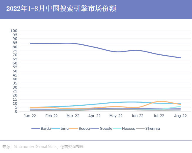 近几年来,在中国搜索引擎市场,百度占山为王,必应,搜狗,谷歌,神马等搜索引擎瓜分着剩余不多的市场。