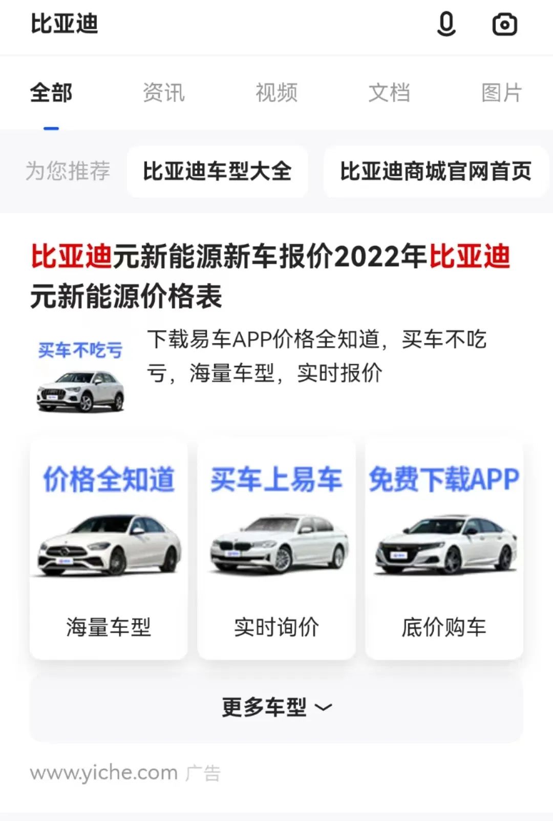(比亚迪关键词搜索结果 图源:夸克APP)
