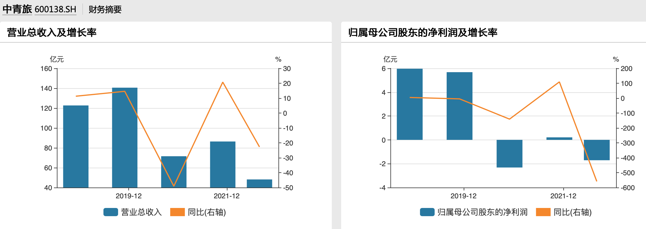 作为国内旅行社行业首家A股上市公司,中青旅此前业绩稳步增长,2019年营收高达140.54亿元。然而疫情对中青旅的冲击显而易见,2020年起公司便陷入业绩颓势,营收减半并录得亏损。2021年公司虽然实现归母净利润2123.31万元,但主要是受益于政府补助,剔除非经常损益后其扣非归母净利润为-1.15亿元。