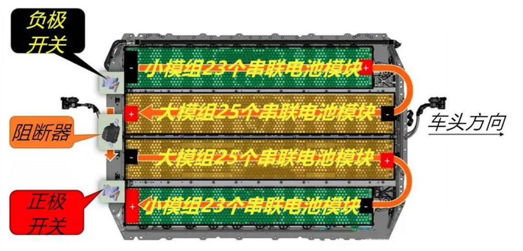 比如,Model3的电池包由2大2小共计四个模组串联组成,大模组25个串联电池模块,小模组23个串联电池模块,每个串联电池模块由46节21700单体电池并联组成,四组共计4416节单体电池。