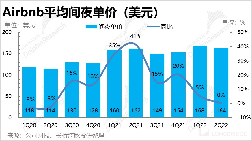 同时,本季平均间夜单价为 165 美元,同比持平。然而在出行全面恢复的预期下,租房结构将由北美向全球转移、由度假出行向商务出行转移,公司在上季度曾指引 ADR 会同有所回落,市场预期本季的 ADR 也仅为 159 美元。因此,ADR 的表现实际强于预期。
