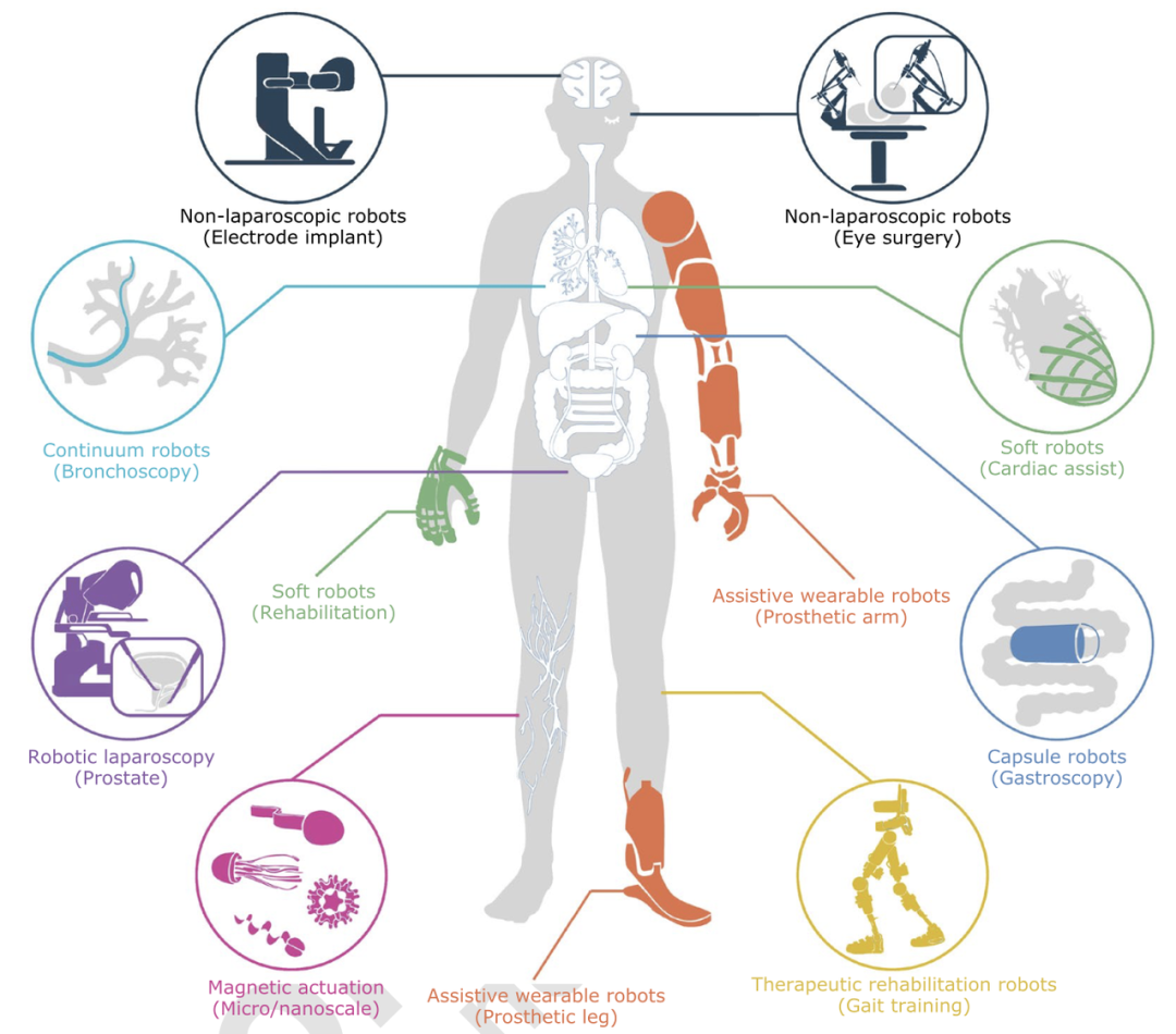 图|8 个关键研究主题的临床应用示例(来源:Science Robotics)