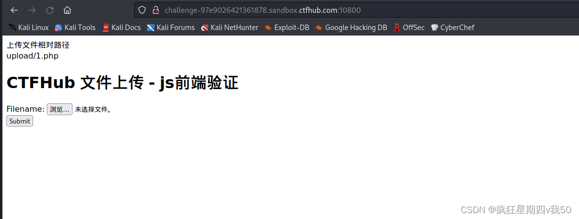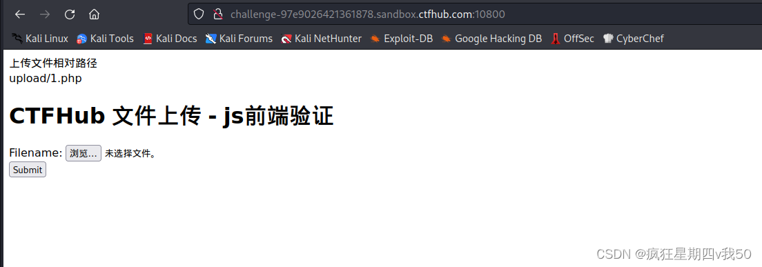 提示我们要绕过js前端验证 于是我们先正常一句话木马进行上传