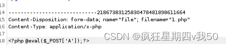 抓到了我们上传的包 发现我们的一句话木马的代码也在里面