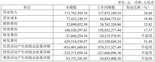 研发费用的增长成为寒武纪上半年增收不增利的一个主要原因。据半年报披露,报告期内,寒武纪持续加大新产品研发力度,引进研发人才,研发费用支出达到6.29亿元,较上年同期增加2.14亿元,研发投入占营业收入的比例为366.34%,同比提升65个百分点。