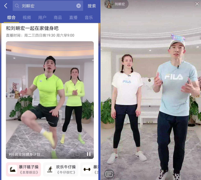 如今,在抖音搜索刘畊宏会直接进入一个“抖音全民健身计划”设置的专属页面,里面除了刘畊宏爆火的健身操合集,还将其直播定义为“刘畊宏健身课”,显然,刘畊宏已经成为“抖音全民健身计划”最具影响力的所在。