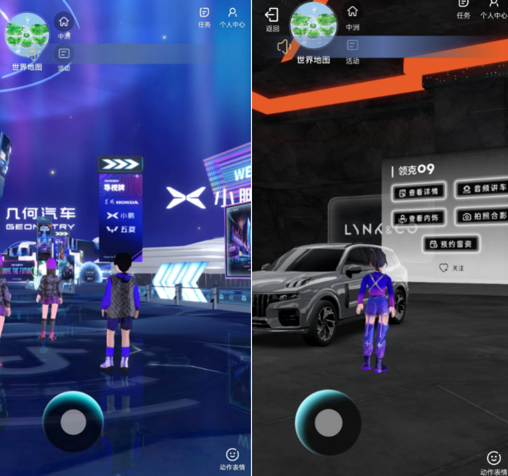 历经多年发展,元宇宙会展的搭建技术解决方案也更进一步成熟。笔者注意到以灵境至维等为代表的虚拟场景搭建技术企业,推出了“抖音汽车嘉年华”虚拟现场“未来汽车城”等,在H5页面即可实现虚拟场景的进入,降低了元宇宙空间的进入门槛,且经过技术迭代后,整体的建模和内存占比也降低了很多,在正常的网络状态下加载每个副本的时间不超过15秒。