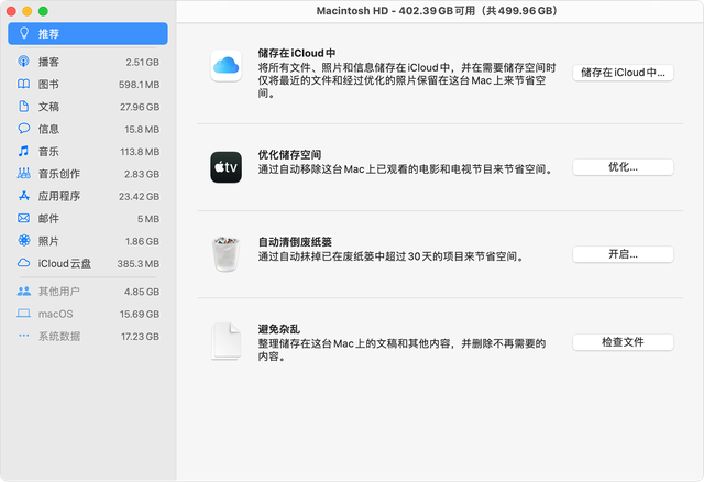 这种情况下,建议通过Mac系统自己带的储存空间管理功能,尽可能的腾出一些可用储存空间。