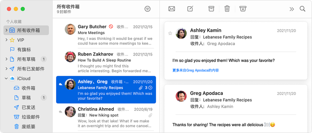 2、清除不需要的邮件:打开【邮件】应用,点击【邮箱】>【清除垃圾邮件】,如果要删除已移入废纸篓的邮件,请选取【邮箱】>【清除已删除项目】;