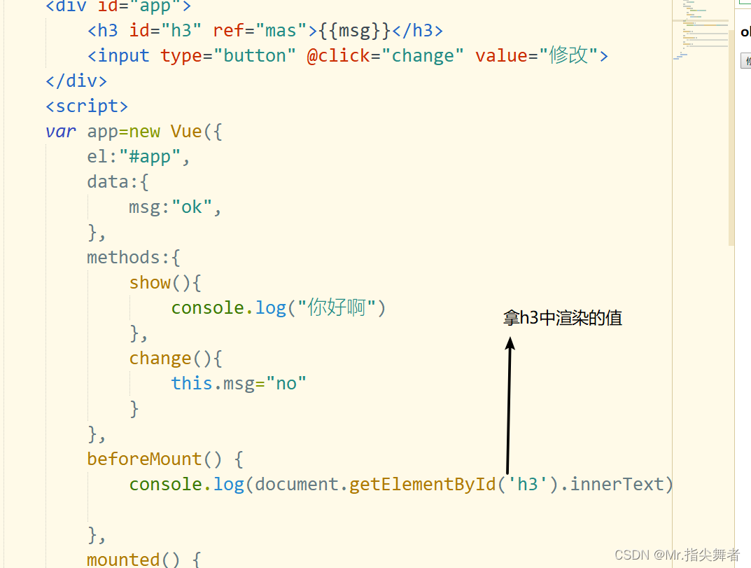 表示:模板已经在内存中编译完成,但是尚未把模板渲染在页面中,在beforeMount()执行的时候,页面中的元素还没有被真正替换过来,只是之前写的一些模板字符串