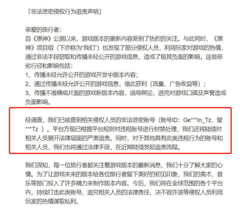 面对内鬼寄生吸血,厂商们也曾拿起法律武器。鹰角网络于今年3月初发公告,表示将追究恶意泄密者的法律责任。