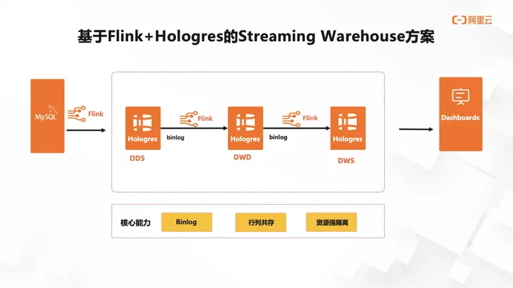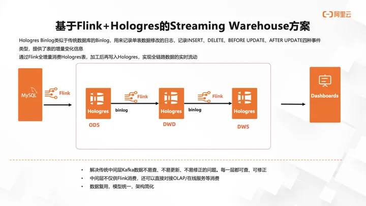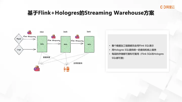 - 行列共存,实现了数据在Flink和Hologres之间的传输,并使每一层的数据可以被查询和修改。
