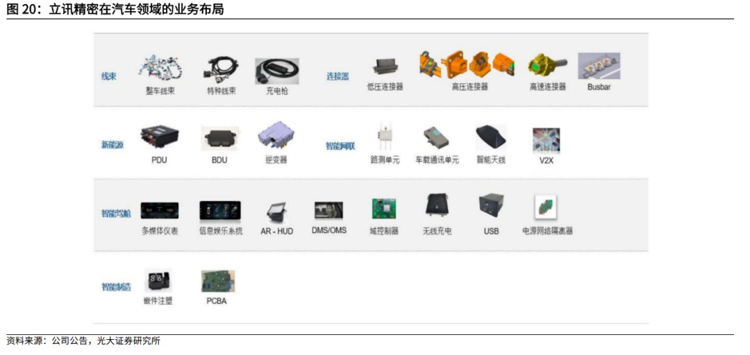 图:立讯精密在汽车领域业务布局,来源:光大证券研究所
