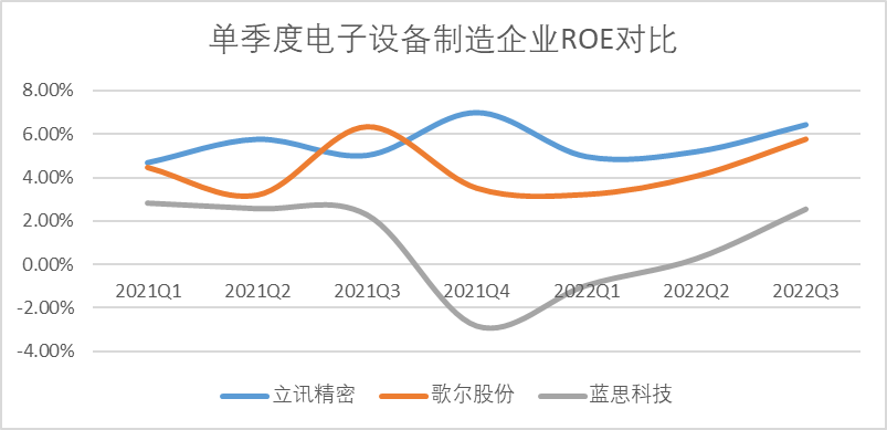 图:单季度电子设备制造企业ROE对比,来源:Choice金融客户端