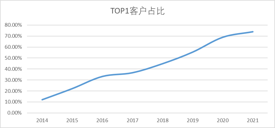 图:立讯TOP1大客户占比,来源:Choice金融客户端