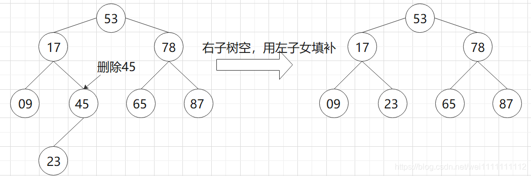 - 若结点z有左、右两棵子树,则令z的直接后继或直接前驱替代z,然后从二叉排序树中删去这个直接后继(或者直接前驱),这样就转换成了第一或第二种情况。