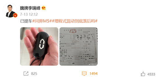 图:魏牌CEO李瑞峰购买问界M5 来源:微博