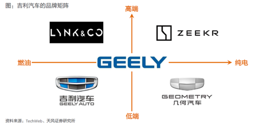 图:吉利旗下品牌矩阵 来源:天风证券