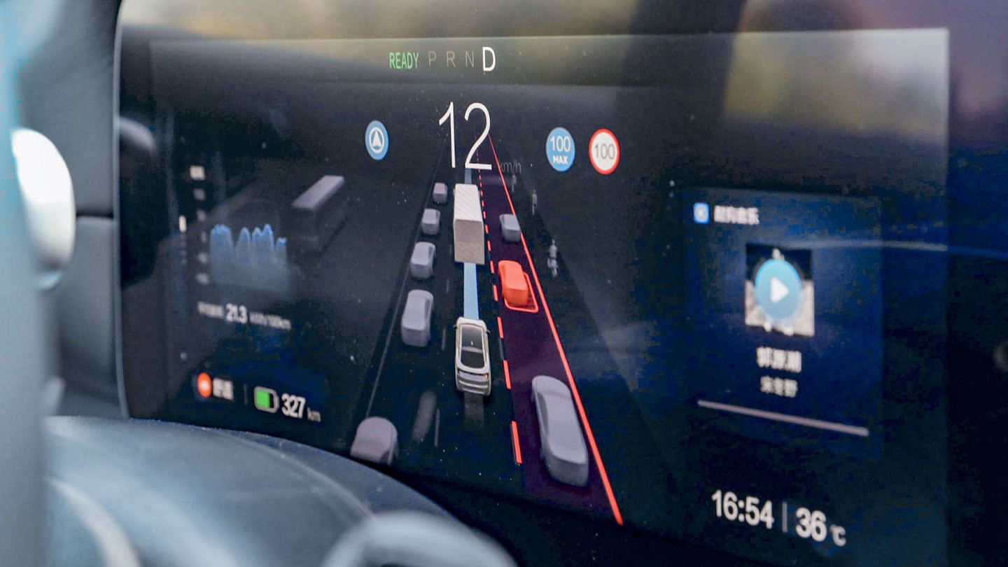 这也体现在转弯和高速路匝道的变道行驶上,判断周围车辆是否减速,然后再并线,如两侧车辆有提速,那么阿尔法S就会减速让行,一旦判断两侧车辆减速让行,那么阿尔法S就会提速并线。当两侧车辆有提速加塞的时候,阿尔法S首先是紧跟前方车辆,如果加塞车辆过于靠近,才会减速或停止让行。